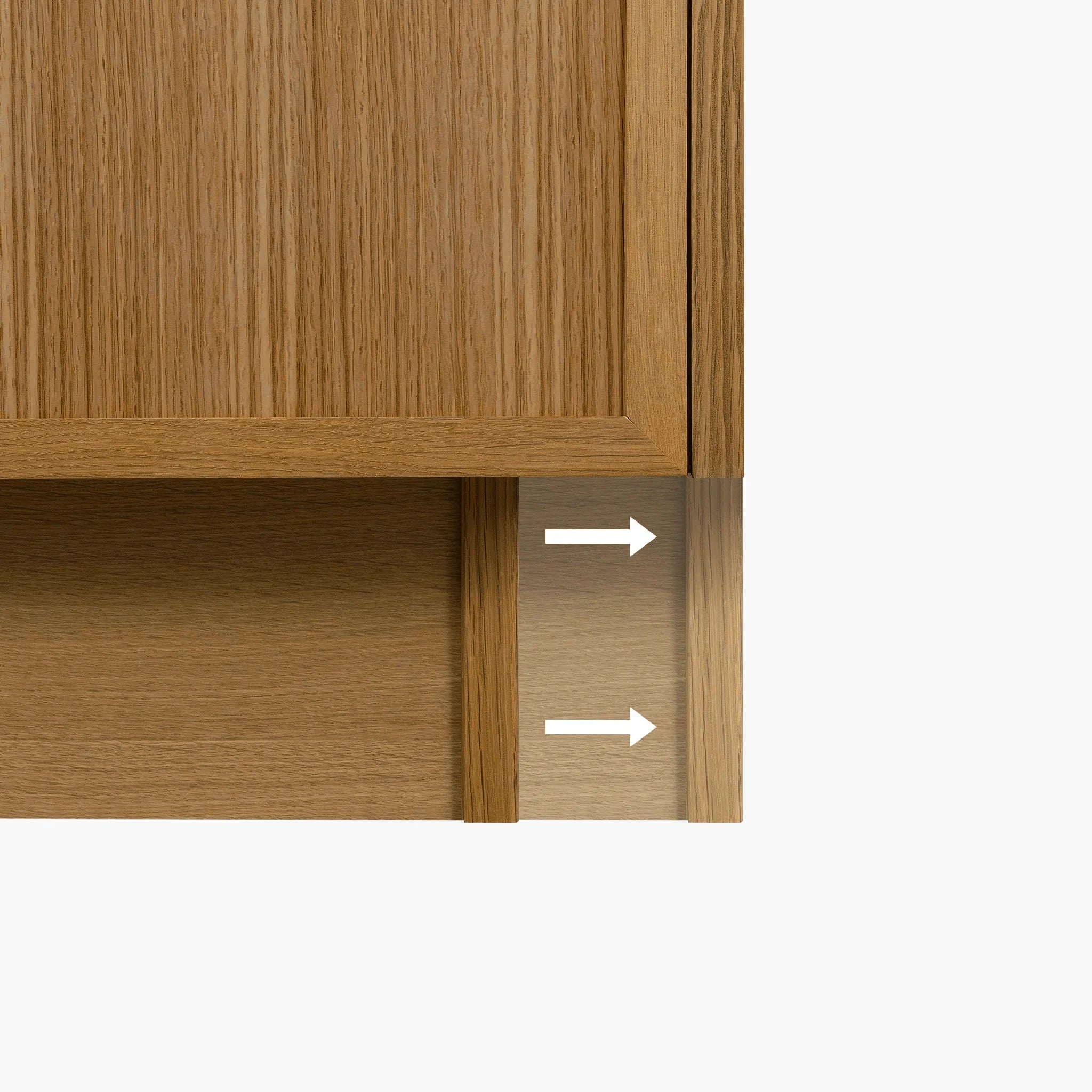 - Stained solid oak, rift cut fronts and sides.