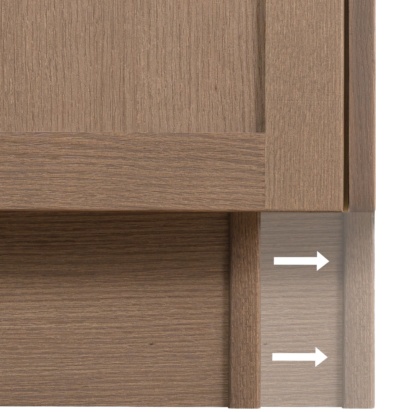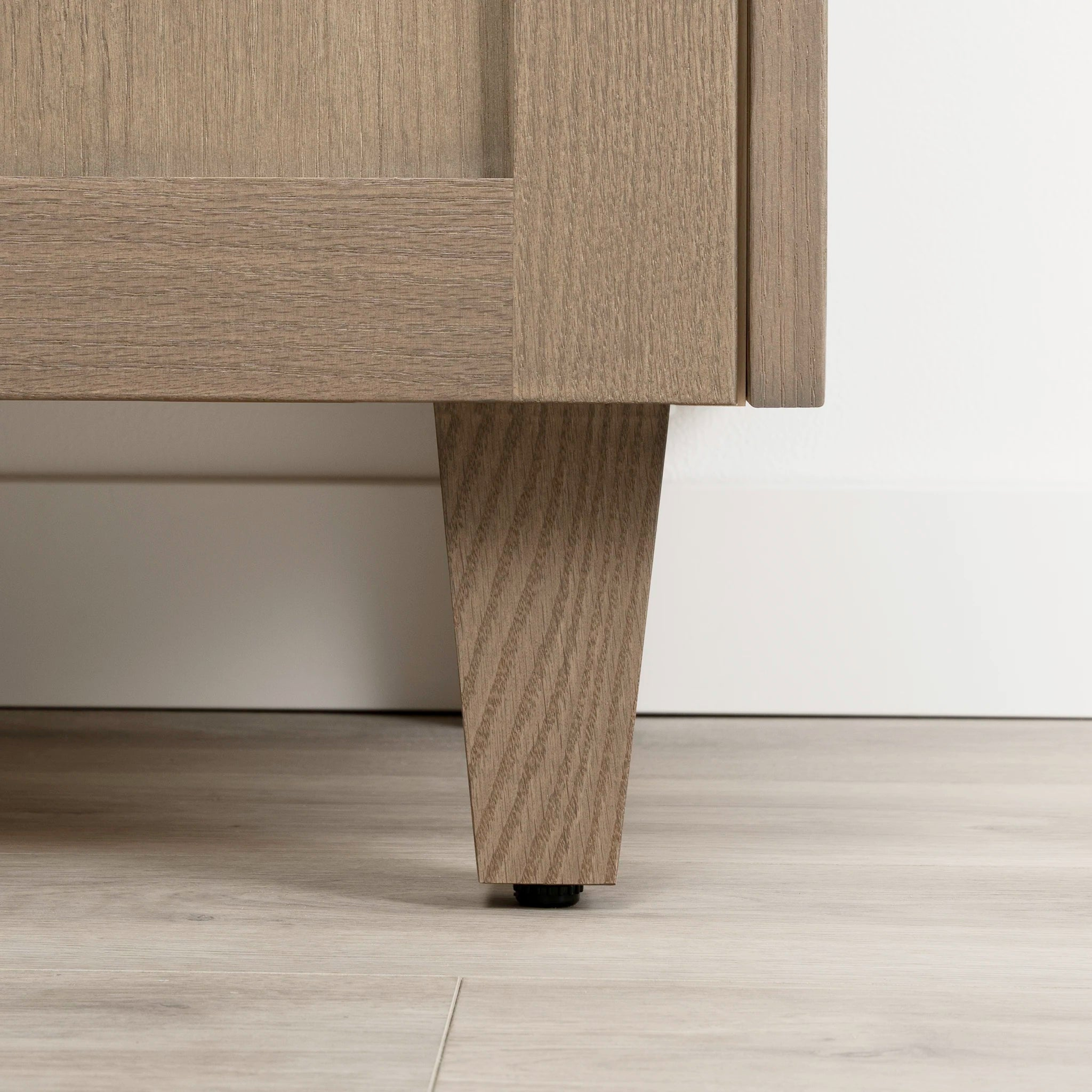 Bridgeport 72" Almond Coast Bathroom Vanity from Canadian made Teodor® vanities. Transitional full oak shaker fronts and sides and tapered solid oak legs. These well made vanities feature solid wood and wood veneer over plywood construction. Top of the line hardware and soft closing, full extension drawer sliders as well as BLUM® 110° full overlay hinges. Intricate dovetail drawer box design, and a wide selection of beautiful finishes and stone tops.
