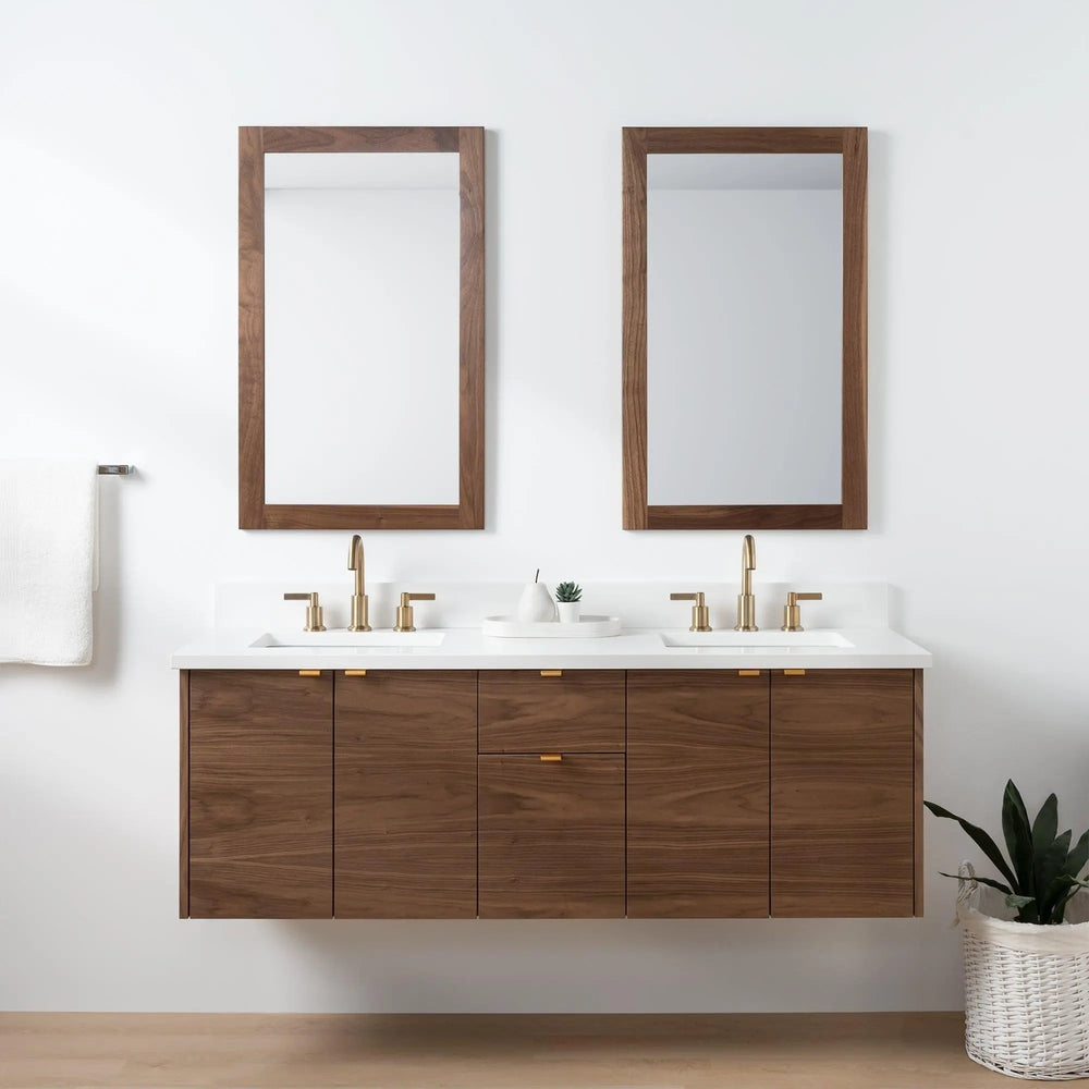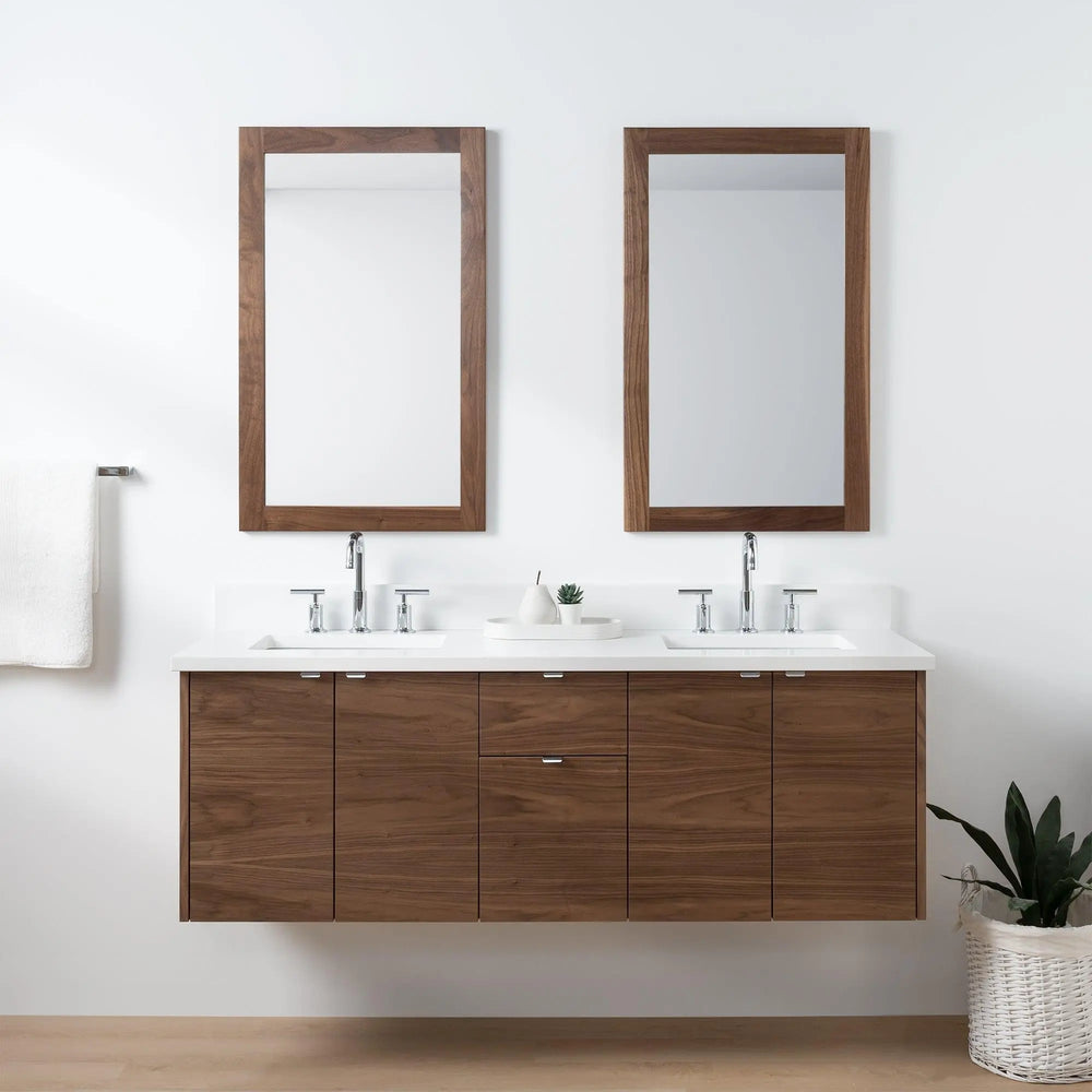 Austin SLIM 60" Wall Mount American Black Walnut Bathroom Vanity, Double Sink