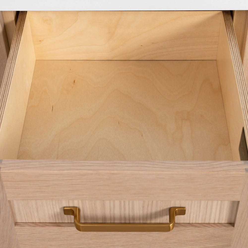 A closer look at the sophisticated design elements of the Bridgeport SLIM White Oak Vanity.