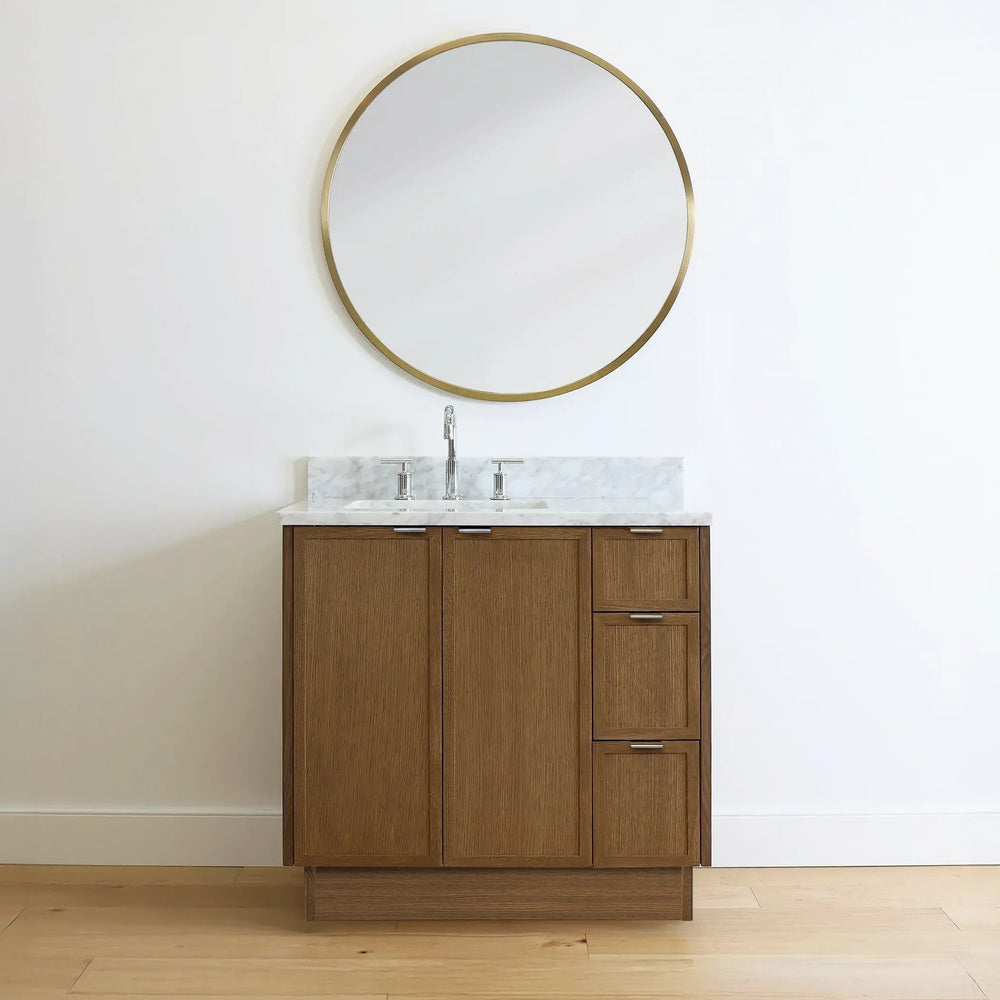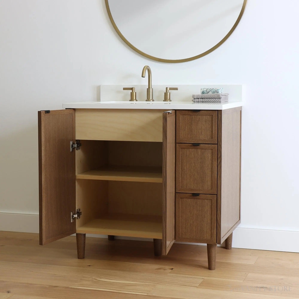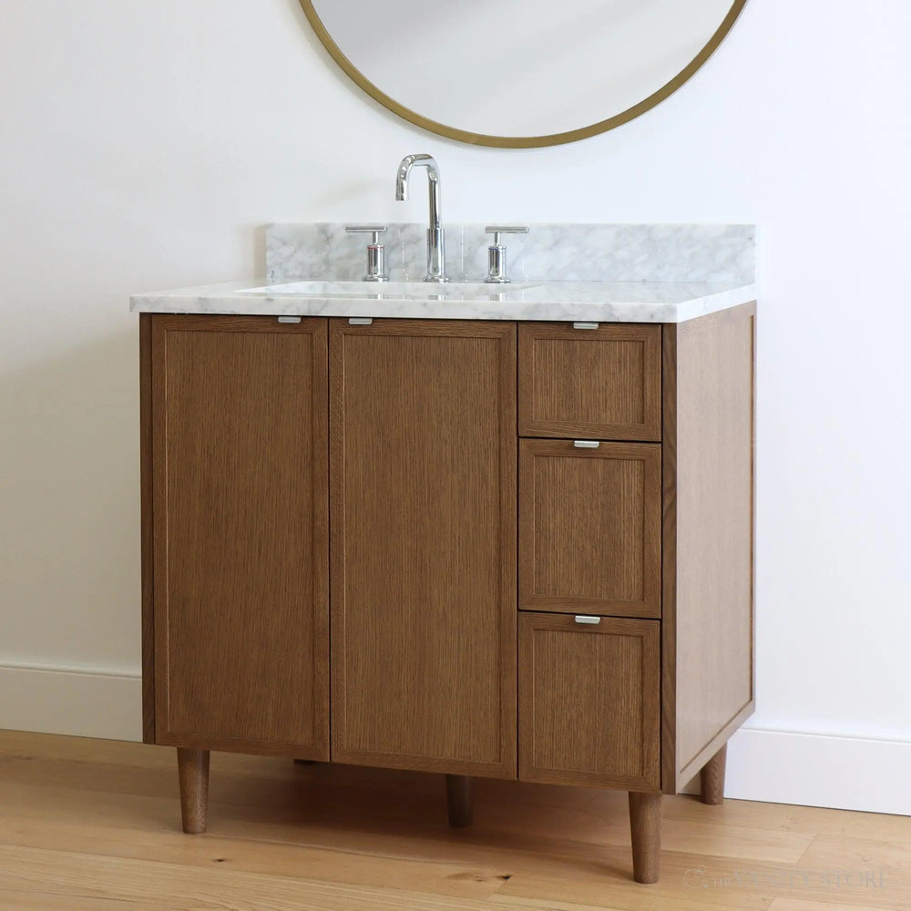 Cape Breton 36" Mid Century Oak Bathroom Vanity, Left Sink