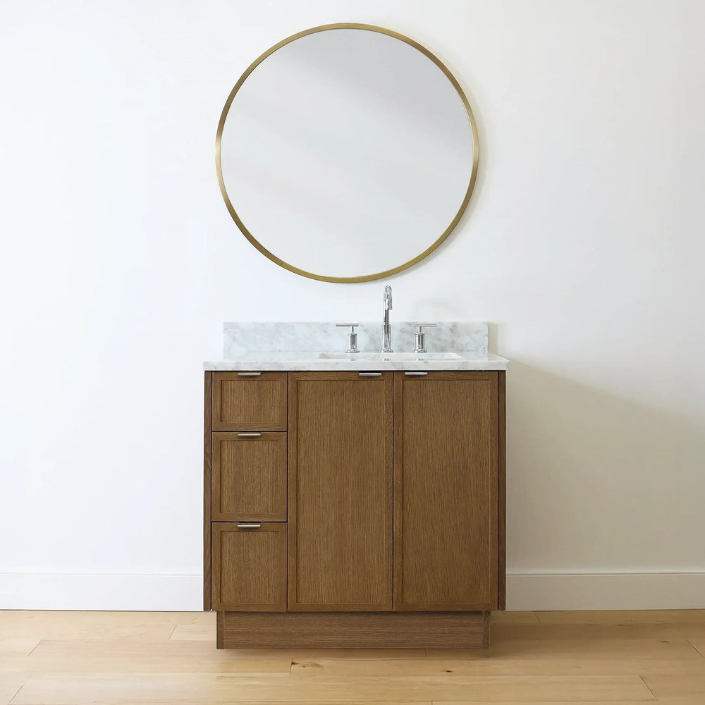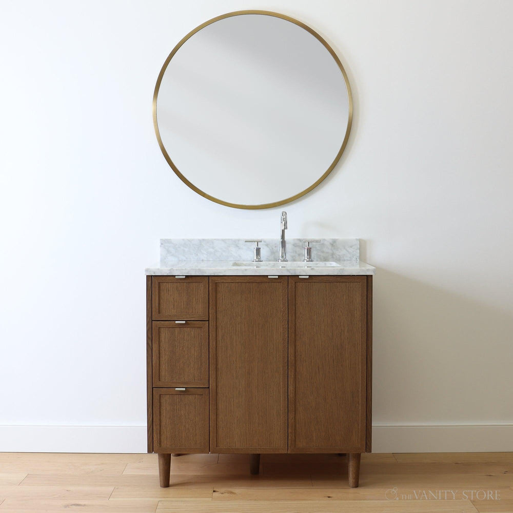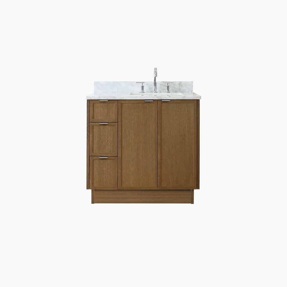 Cape Breton 36" Mid Century Oak Bathroom Vanity, Right Sink