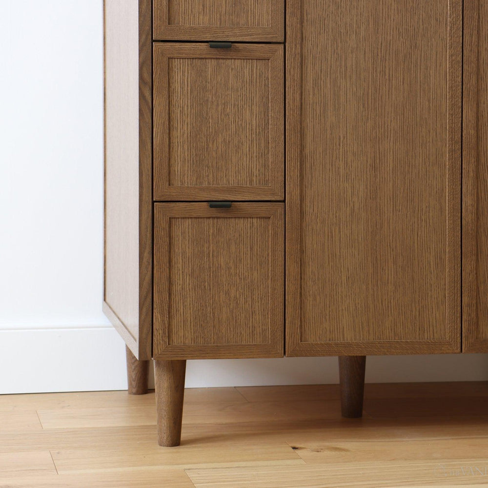 A closer look at the sophisticated design elements of the Cape Breton Mid Century Oak Vanity.