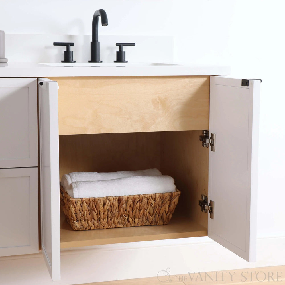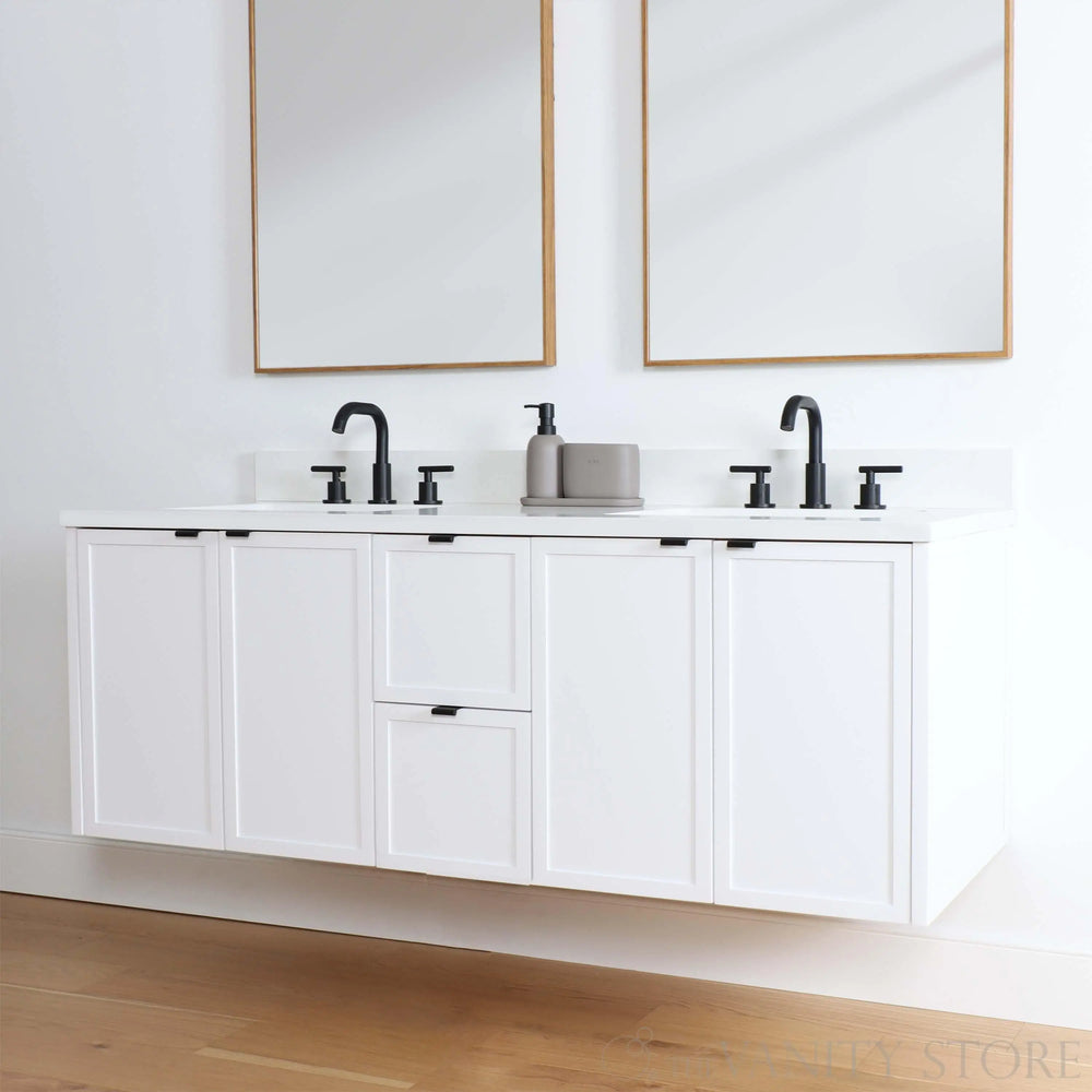 Cape Breton 60" Wall Mount Satin White Bathroom Vanity, Double Sink