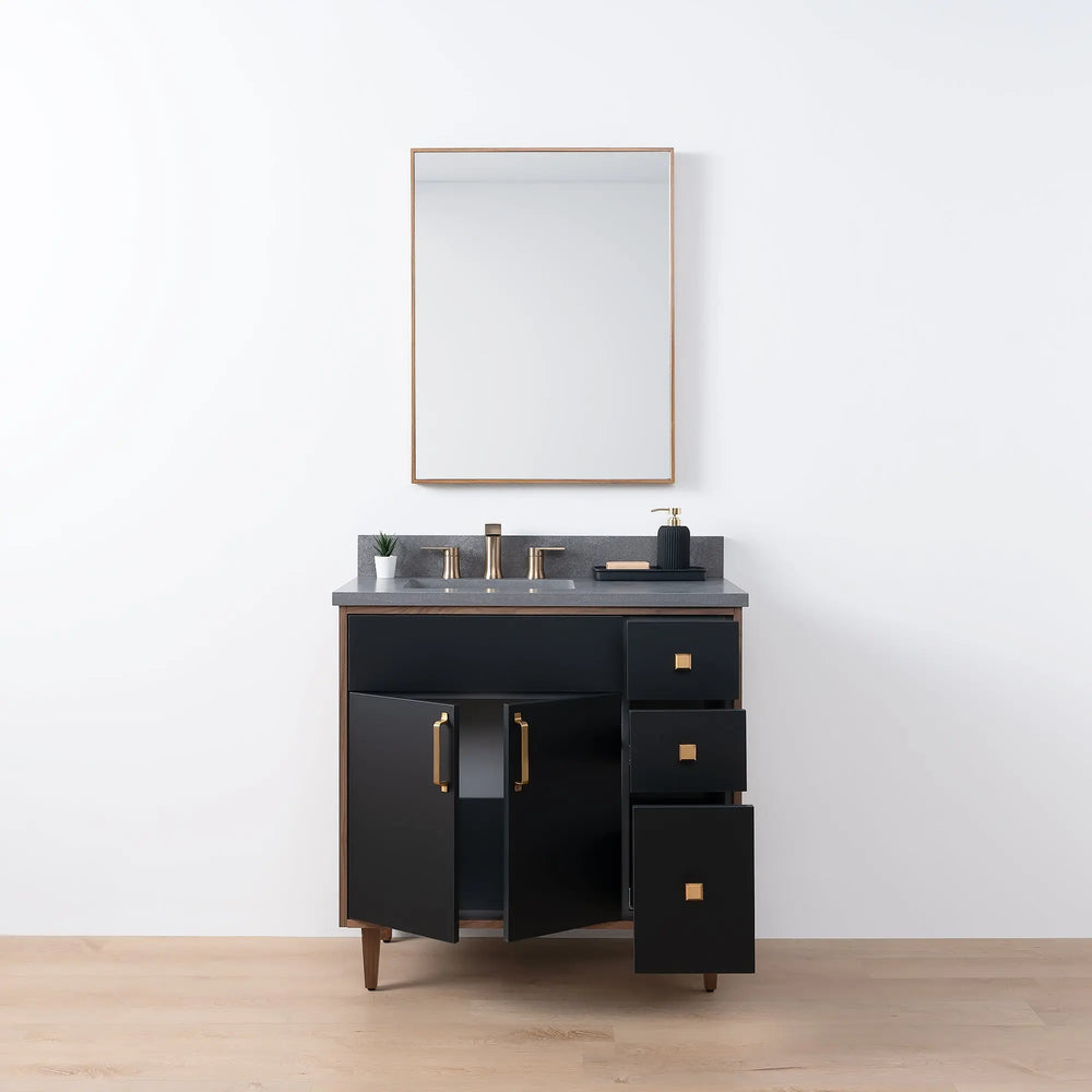 Sidney Slim 36" Matte Black Bathroom Vanity, Left Sink