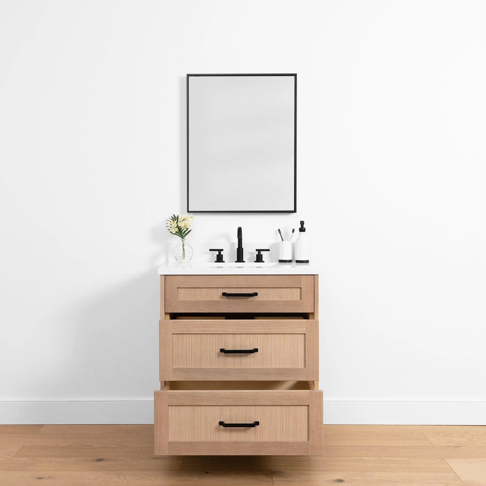 Bridgeport Slim 30" White Oak Bathroom Vanity - All Drawers