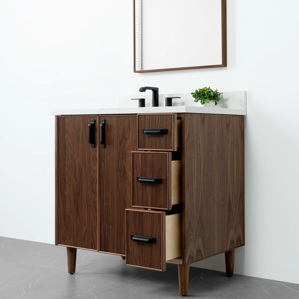Malibu 36" American Black Walnut Bathroom Vanity, Left Sink from Canadian made Teodor® vanities.