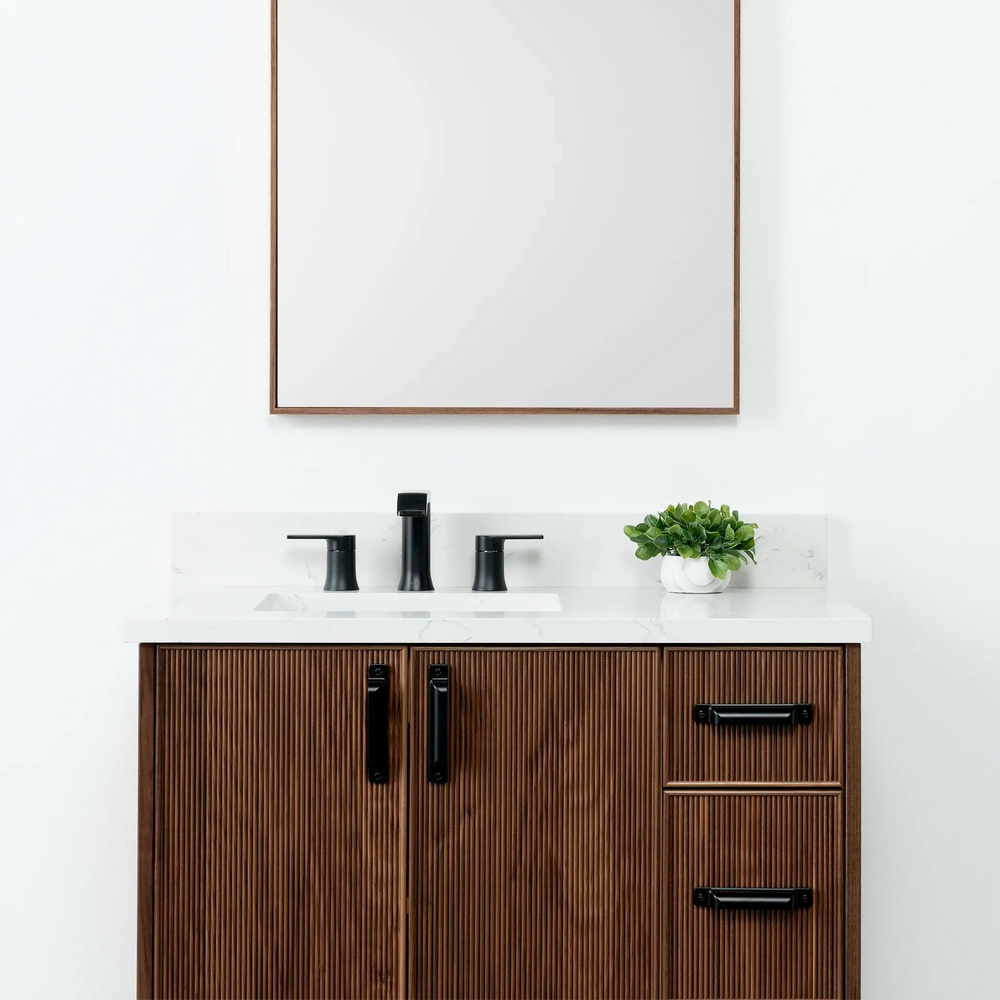 A closer look at the sophisticated design elements of the Malibu American Black Walnut Vanity.