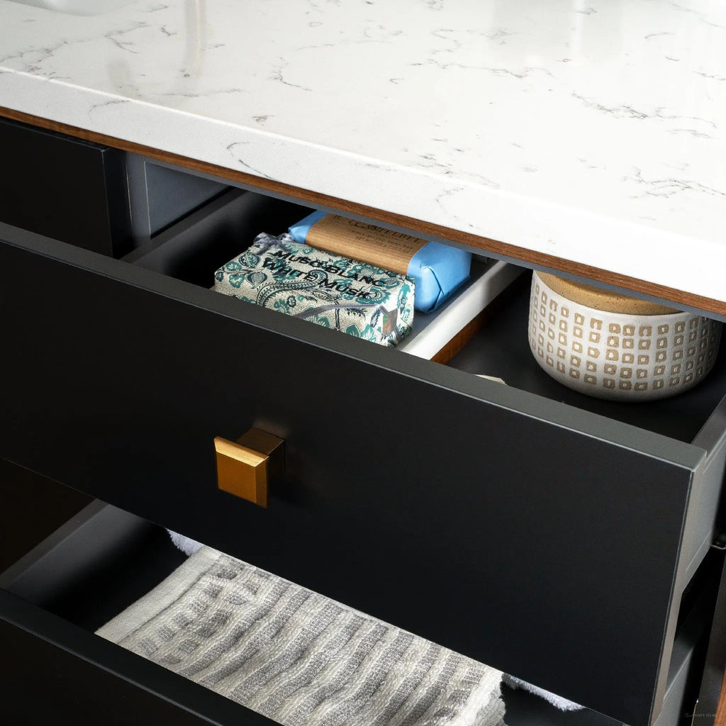A closer look at the sophisticated design elements of the Sidney Matte Black Vanity.