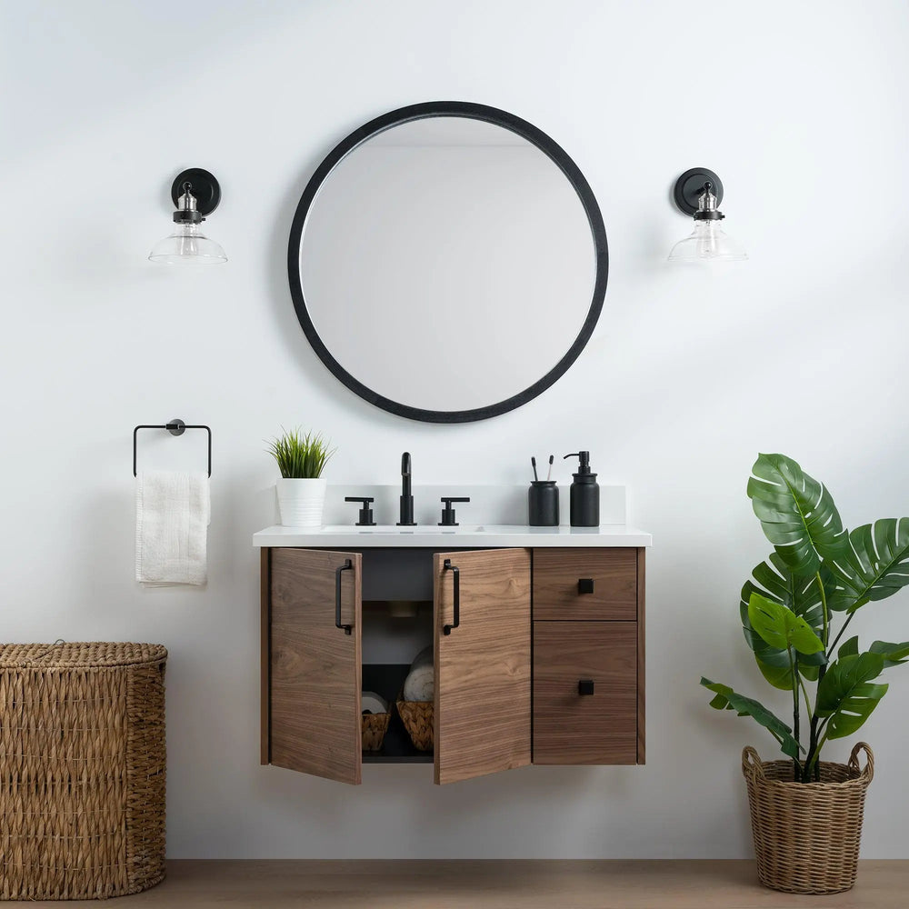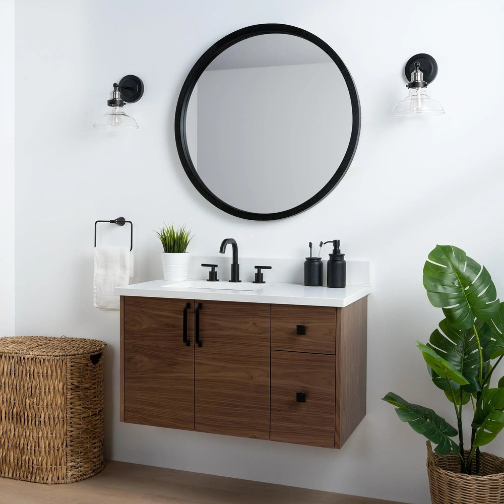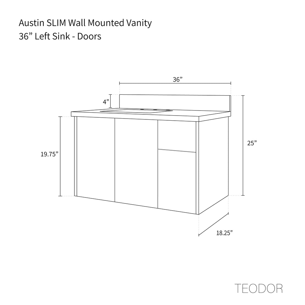 Austin Slim 36" Wall Mount American Black Walnut Bathroom Vanity, Left Sink