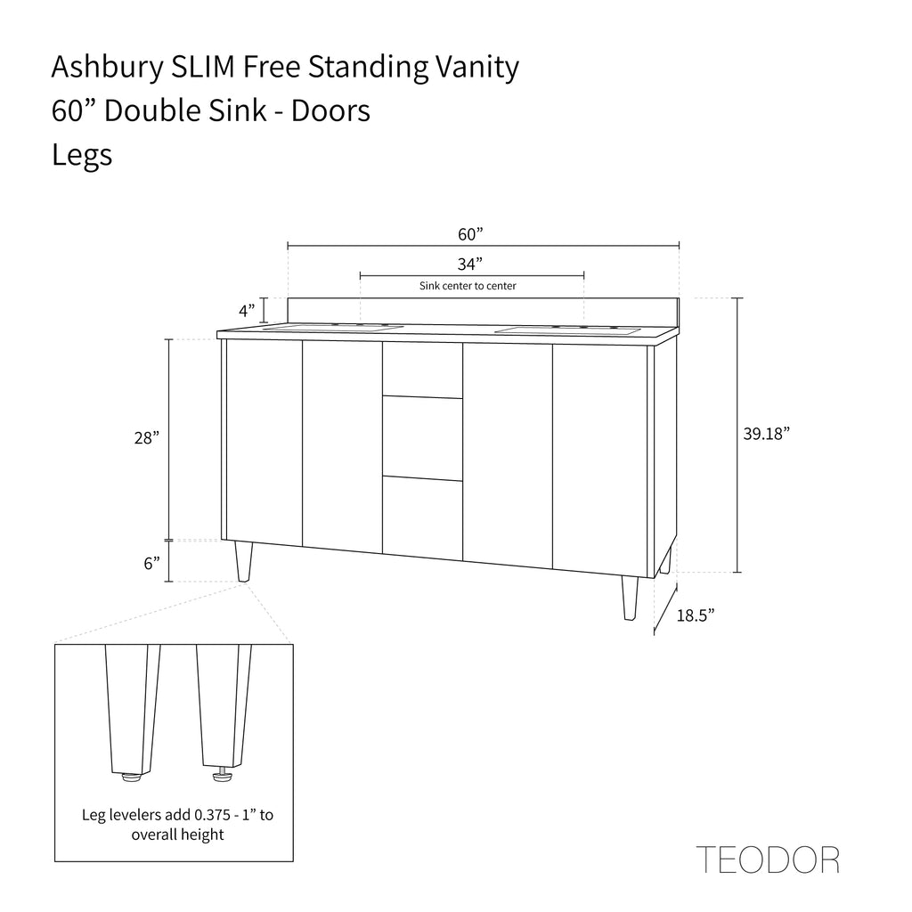 Ashbury SLIM 60" Natural White Oak Bathroom Vanity, Double Sink