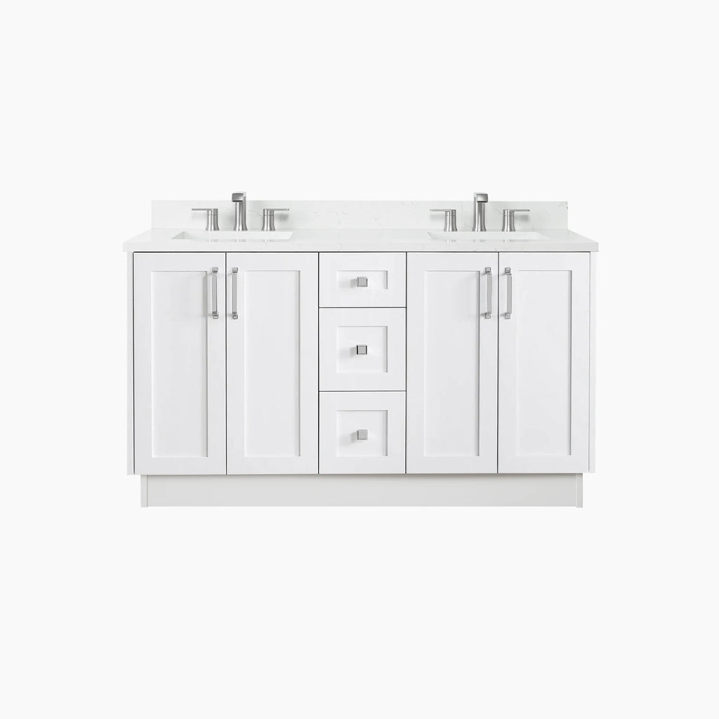 Bridgeport Slim 60" Satin White Bathroom Vanity, Double Sink
