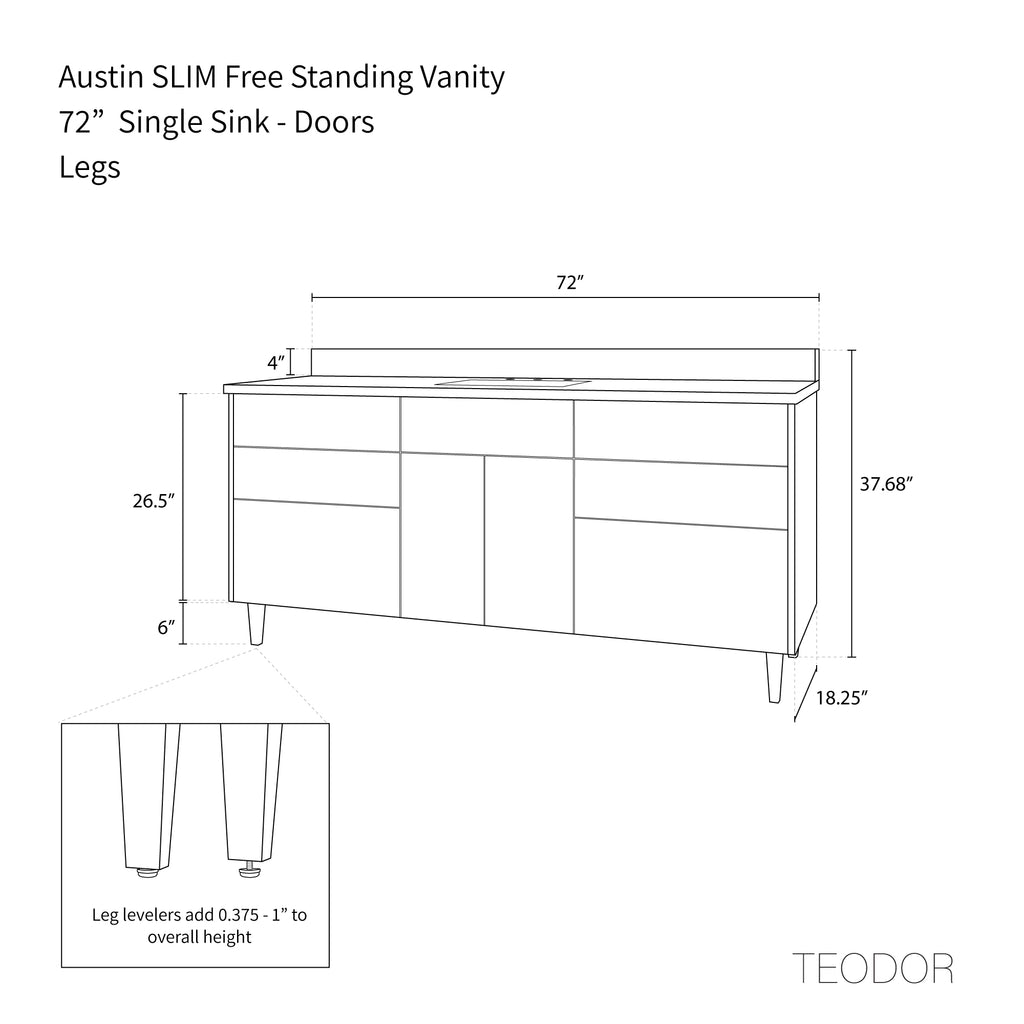 Austin SLIM 72" American Black Walnut Bathroom Vanity