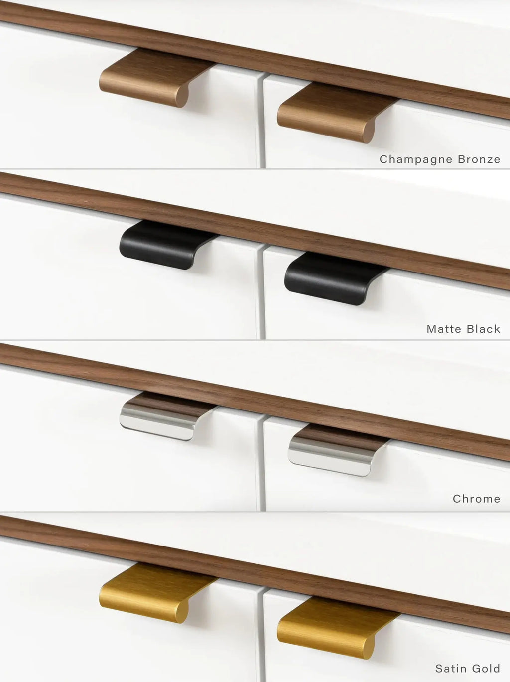 - Optional handle finishes; Chrome, Matte Black, Champagne Bronze, Satin Gold, Aurum Brushed Gold and Brushed Nickel.