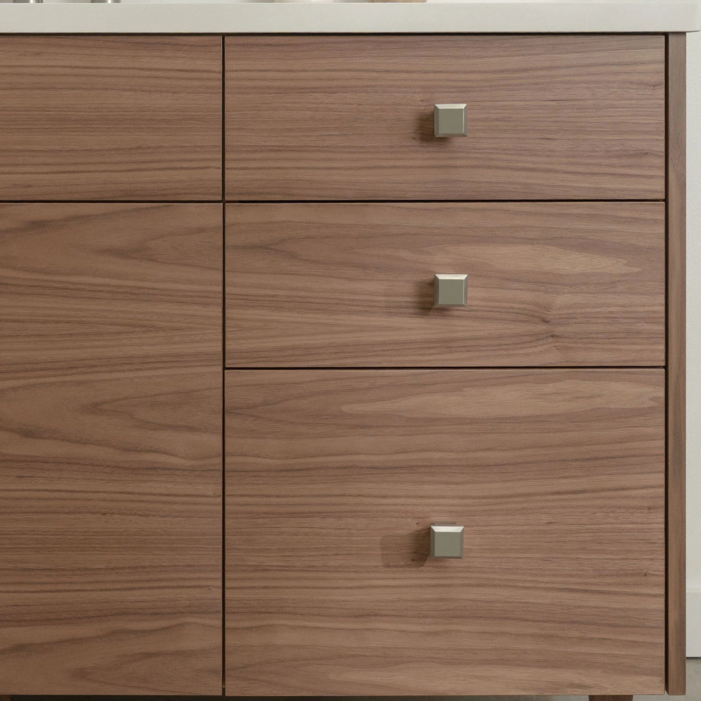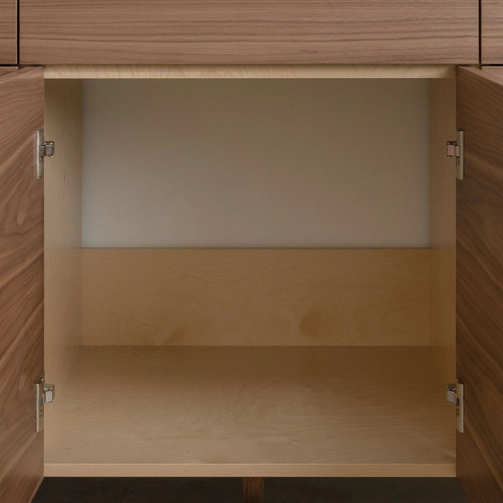 The door and drawer fronts are grain matched from one piece of walnut veneer, for a sleek modern look. The grain pattern will flow beautifully from one door to the next.