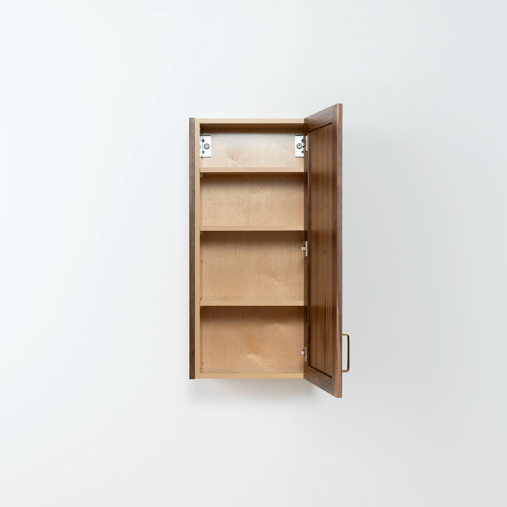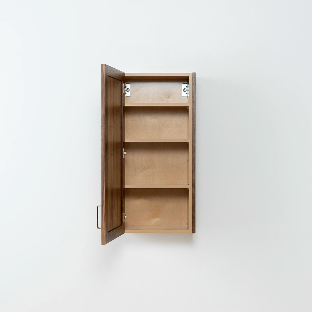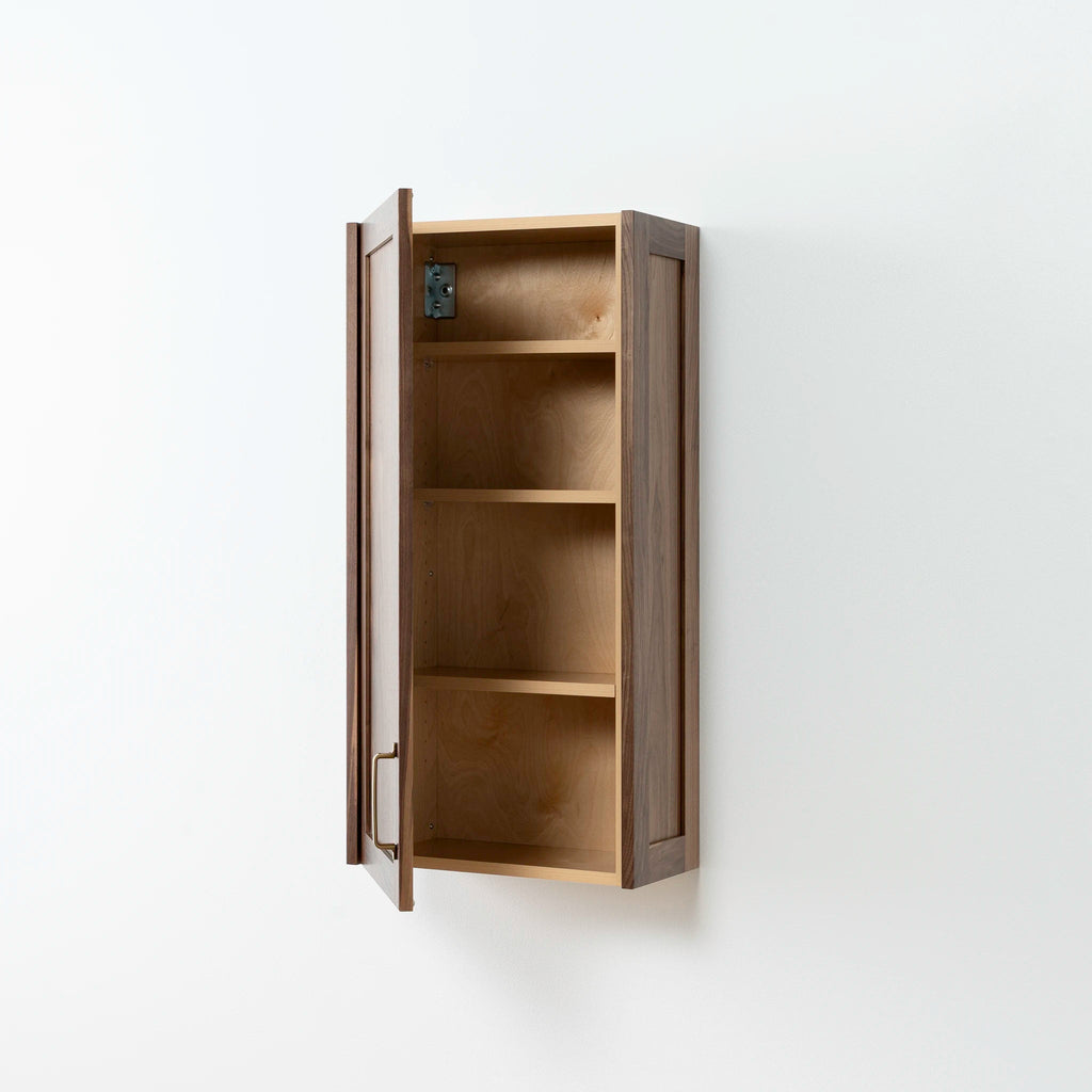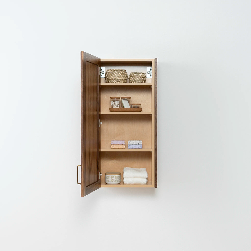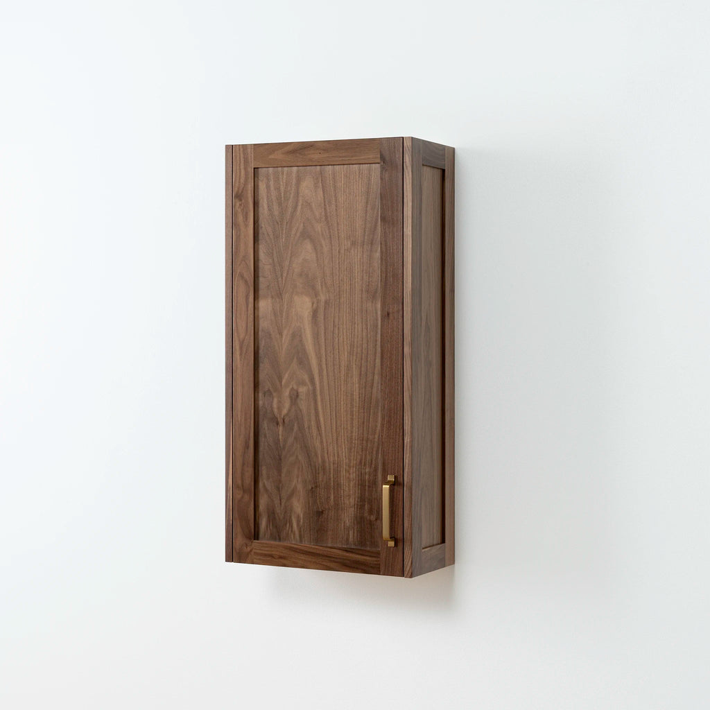 The Bridgeport Wall Cabinet offers the ideal storage solution with its sturdy solid wood and plywood backed wood veneer construction. Its wall-mounted design is both space-saving and aesthetically pleasing, allowing you to create an organized, modern look without sacrificing floor space. Perfect for mounting above the toilet to create usable storage space. Featuring solid wood and wood veneer over plywood construction, as well as top of the line hardware and BLUM® 110° full overlay hinges.