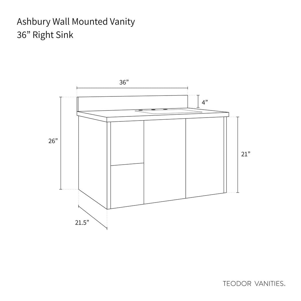 Ashbury 36" Wall Mount Natural White Oak Bathroom Vanity, Right Sink