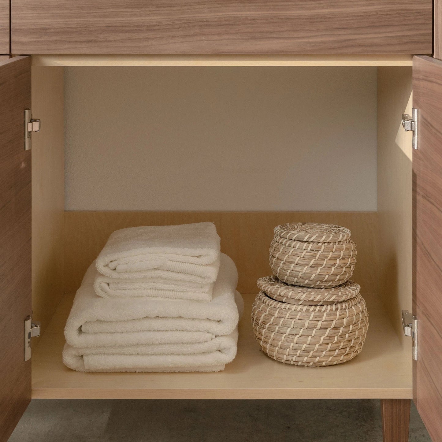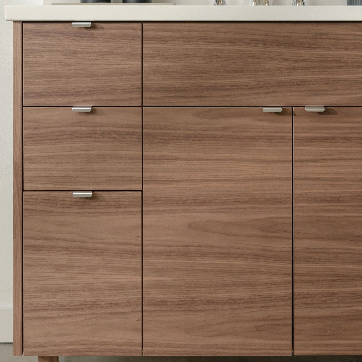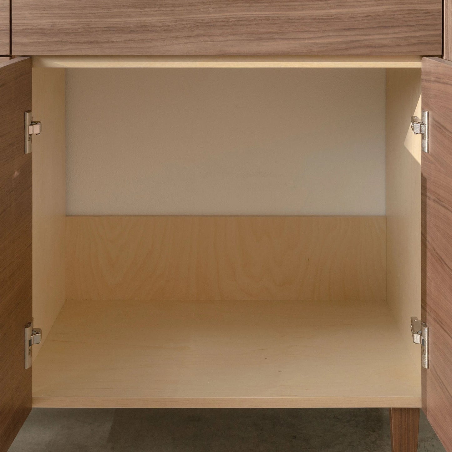 The door and drawer fronts are grain matched from one piece of walnut veneer, for a sleek modern look. The grain pattern will flow beautifully from one door to the next.