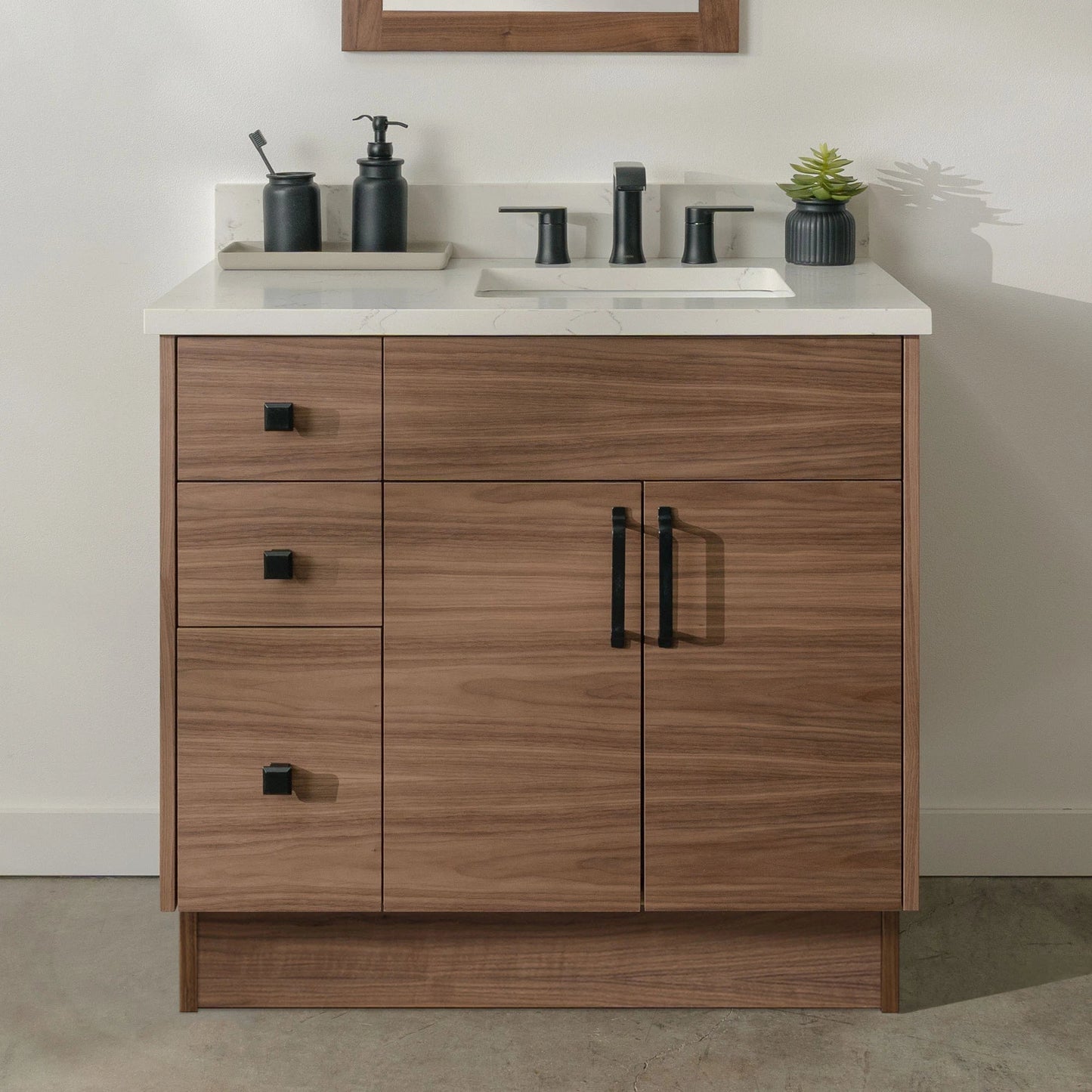 Austin Stainless 36" American Black Walnut Bathroom Vanity, Right Sink