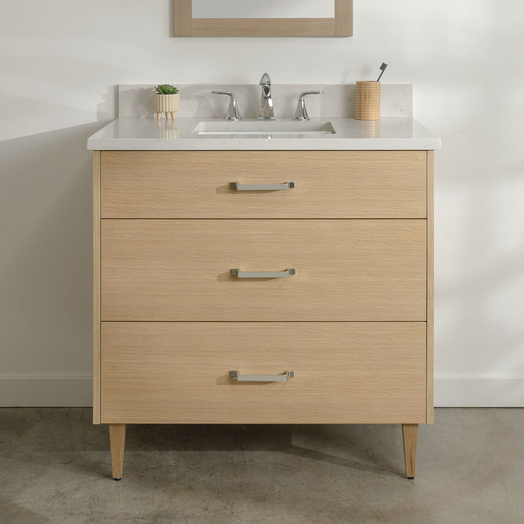 Ashbury 36" Natural White Oak Bathroom Vanity - All Drawers