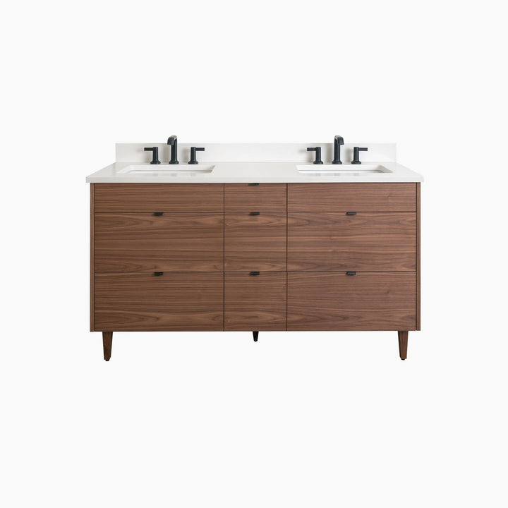 Asher Stainless 60" American Black Walnut Bathroom Vanity, Double Sink is proudly made in Canada.