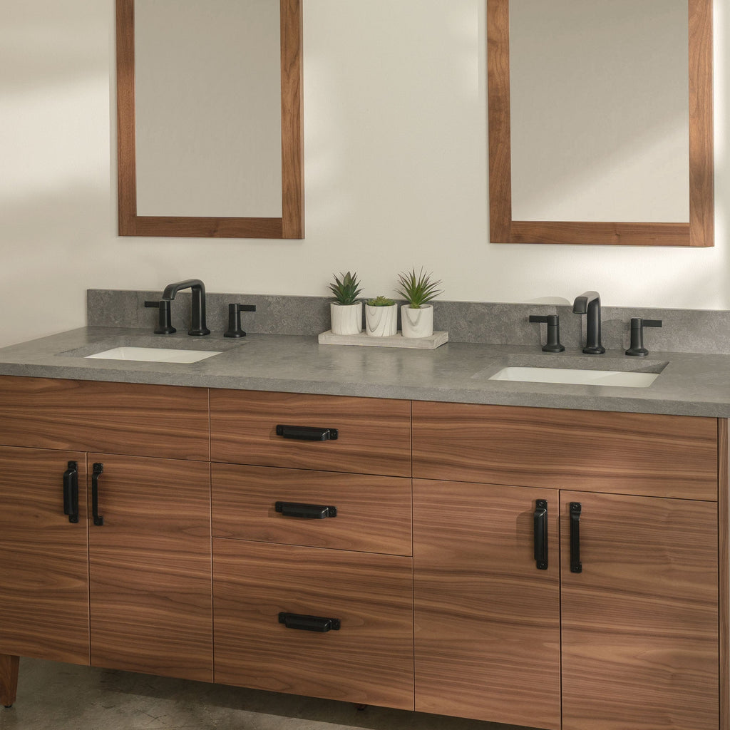 Austin Stainless 72" American Black Walnut Bathroom Vanity, Double Sink