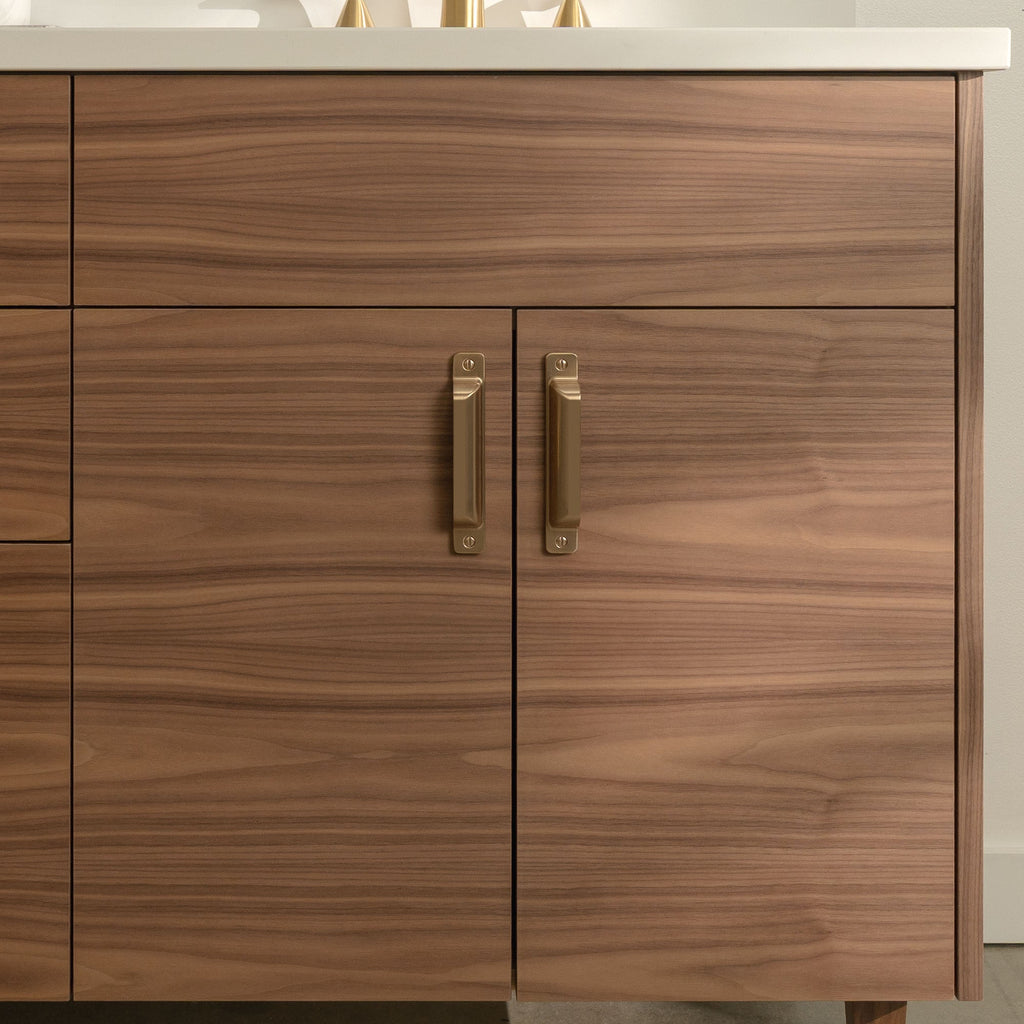 A closer look at the sophisticated design elements of the Austin Stainless American Black Walnut Vanity.