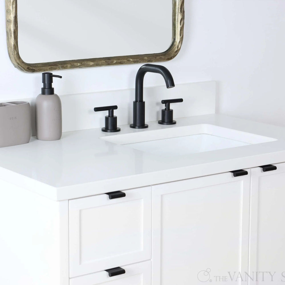 A closer look at the sophisticated design elements of the Cape Breton Satin White Vanity.